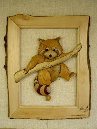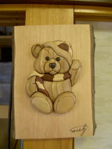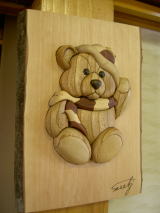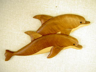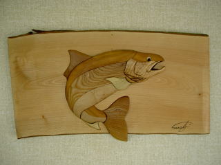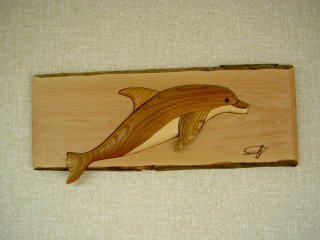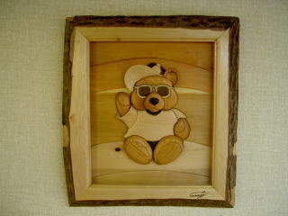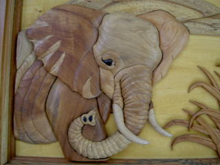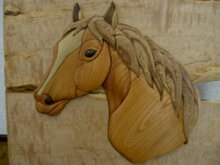 | 日本ではインターシアはネットで検索しても日本では出てこない珍しいアートなので 日本語でわかり易い組木絵してと紹介ています。 木には白い木、黒い木、茶色い木さまざまな色の木を組合わせて絵を作り、個々の 厚さを変えて面取りしてるため作品がレリーフ状に立体的に仕上がっています。 木目の流れと銘木の光沢を生かすために着色はしておりません。(オイルフィニッシュ) |