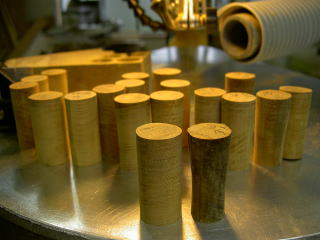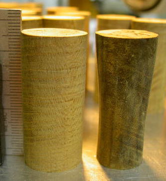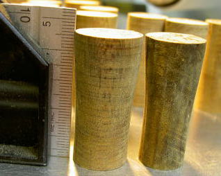 こんな感じで20ミリの円を切断して切断抵抗や決断面の状態をテストして点数を組木工房の見た目と