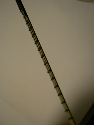 切断して見ると破断しにくい木工には不向きの糸鋸刃です。 |