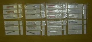組木工房が世界中から個人輸入をした外国製の糸鋸刃のコレクションの写真を見て下さい。